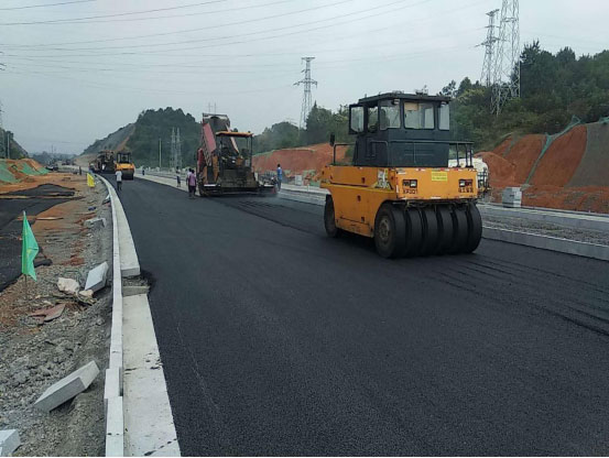 3、道路工程:K0+060~K2+040右幅机动车道已完成第一层沥青摊铺,左幅机动车道已完成240米第一层沥青摊铺,左右幅辅道水稳摊铺完成1800米